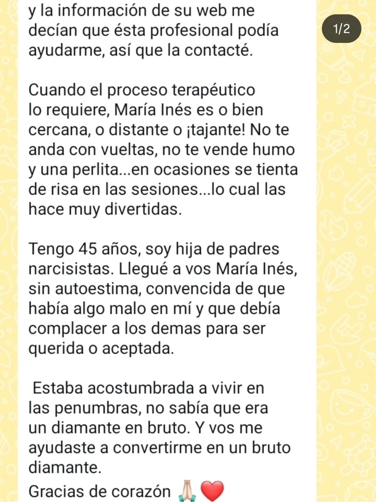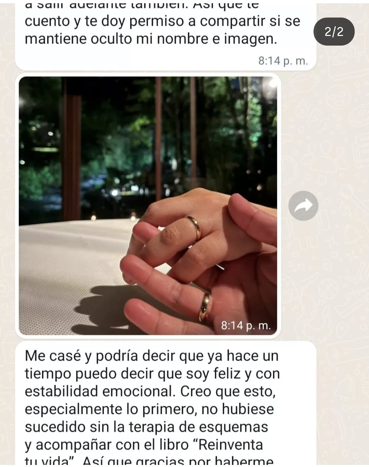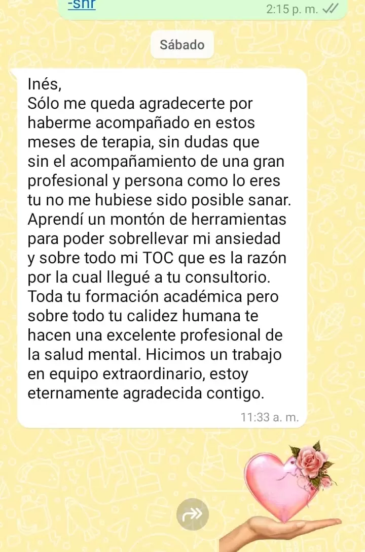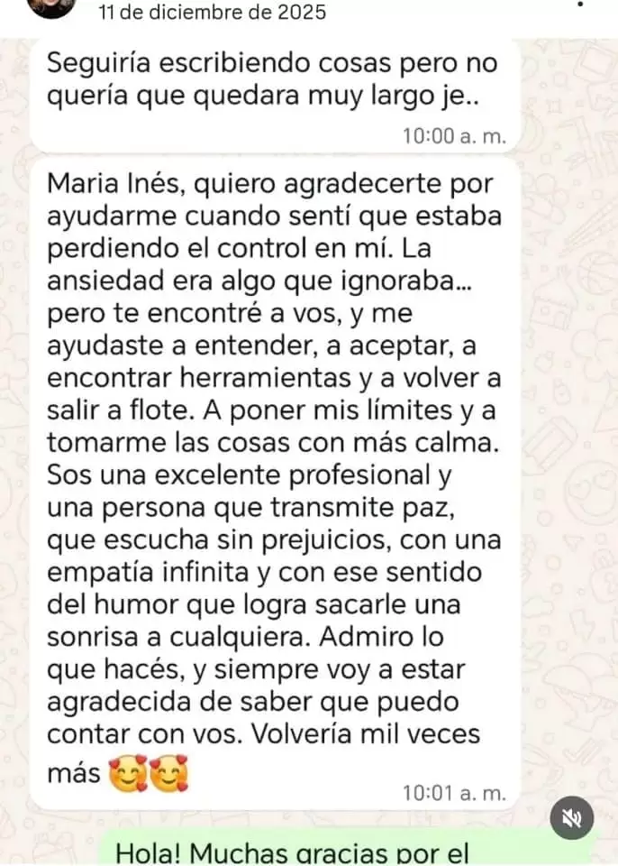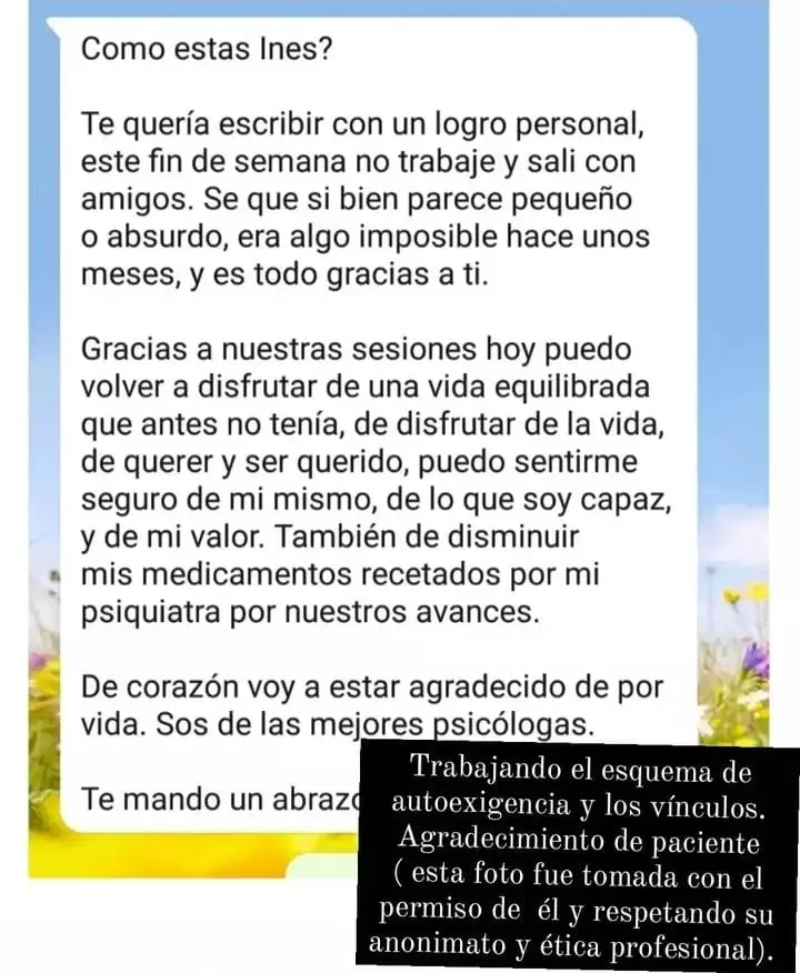 Estos testimonios se publican con su consentimiento , garantizando siempre el anonimato y la confidencialidad que sostienen mi práctica profesional y mi compromiso ético.